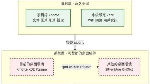 透過rpm-ostree rebase更換Linux的桌面環境,快速進行DE Hopping2026年3月4日分類 Linux系統 Linux使用技巧標籤 OSTree Distro-Hopping Fedora GNOME KDE Plasma Flatpak