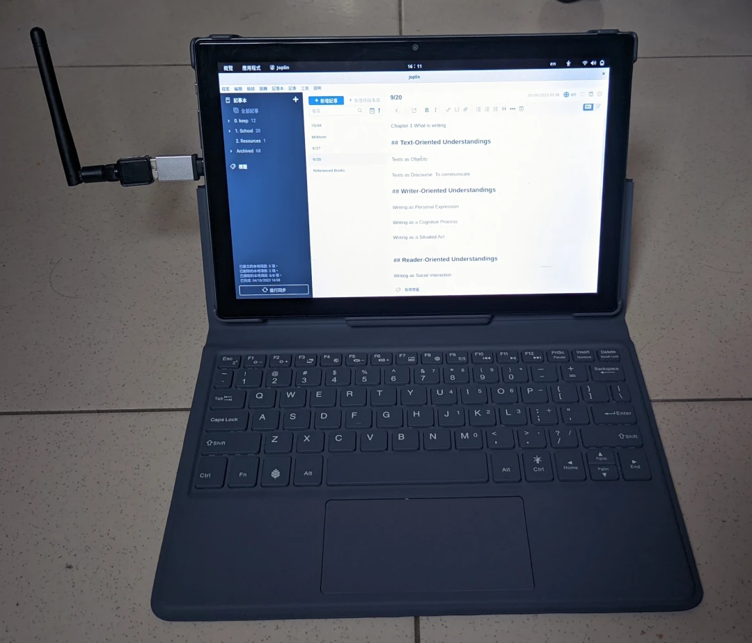 PineTab 2還是可以勝任輕度工作的。我不太手寫筆記,大部分我是打在Joplin。如果要用寫的話,之後我會把寫在紙上的內容拍下來存到Joplin,所以PineTab 2不支援手寫筆不是大問題。