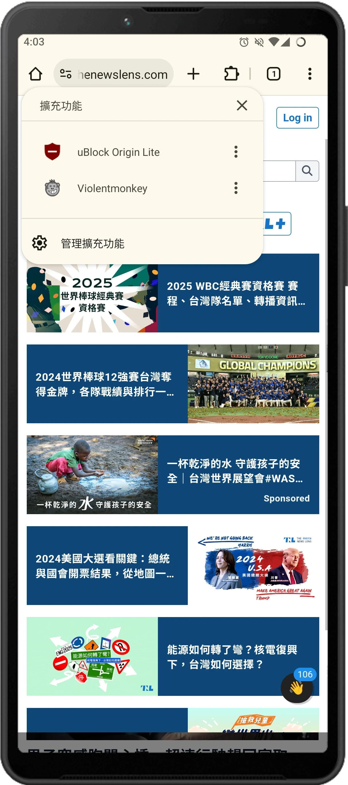 Cromite的擋廣告是採用Adblock Plus,我覺得這份清單效果不好。所以我會另外安裝uBlock Origin Lite(支援Manifest V3)來擋廣告。