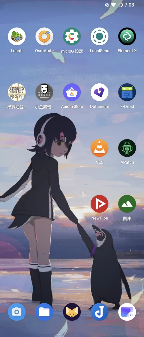 - 社群軟體:Telegram FOSS、Signal、Elements (可存取Matrix和IRC)、NewPipe (可存取Youtube和PeerTube)