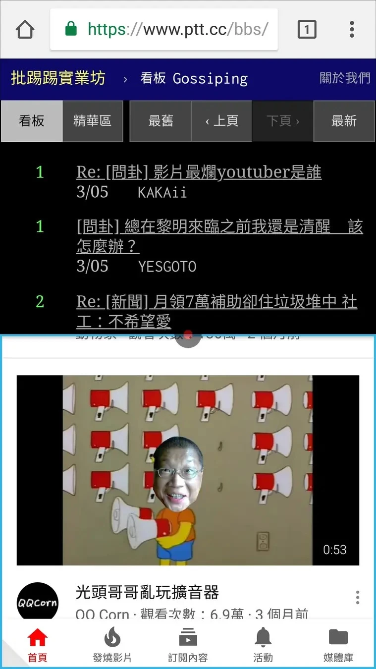 Android 6.0的年代還得靠Xposed模組實現假性分割螢幕。XHaloFloatingWindow這個模塊提供的功能是懸浮視窗,但是可以選擇對齊,就可以變成如下的Android 7上下雙視窗。
