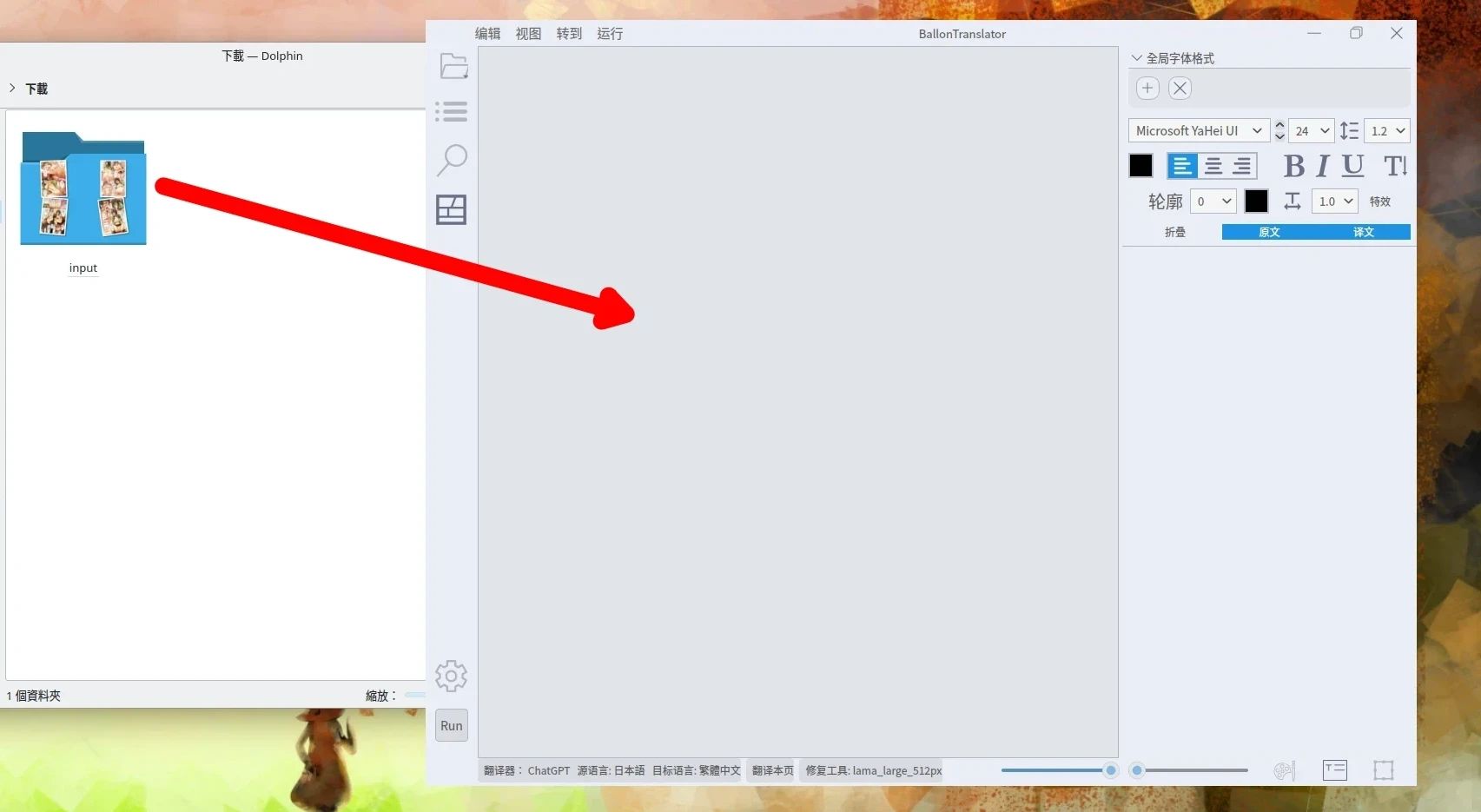 將要翻譯的漫畫圖檔資料夾,拖入BallonsTranslator視窗,再點選左下角的「Run」