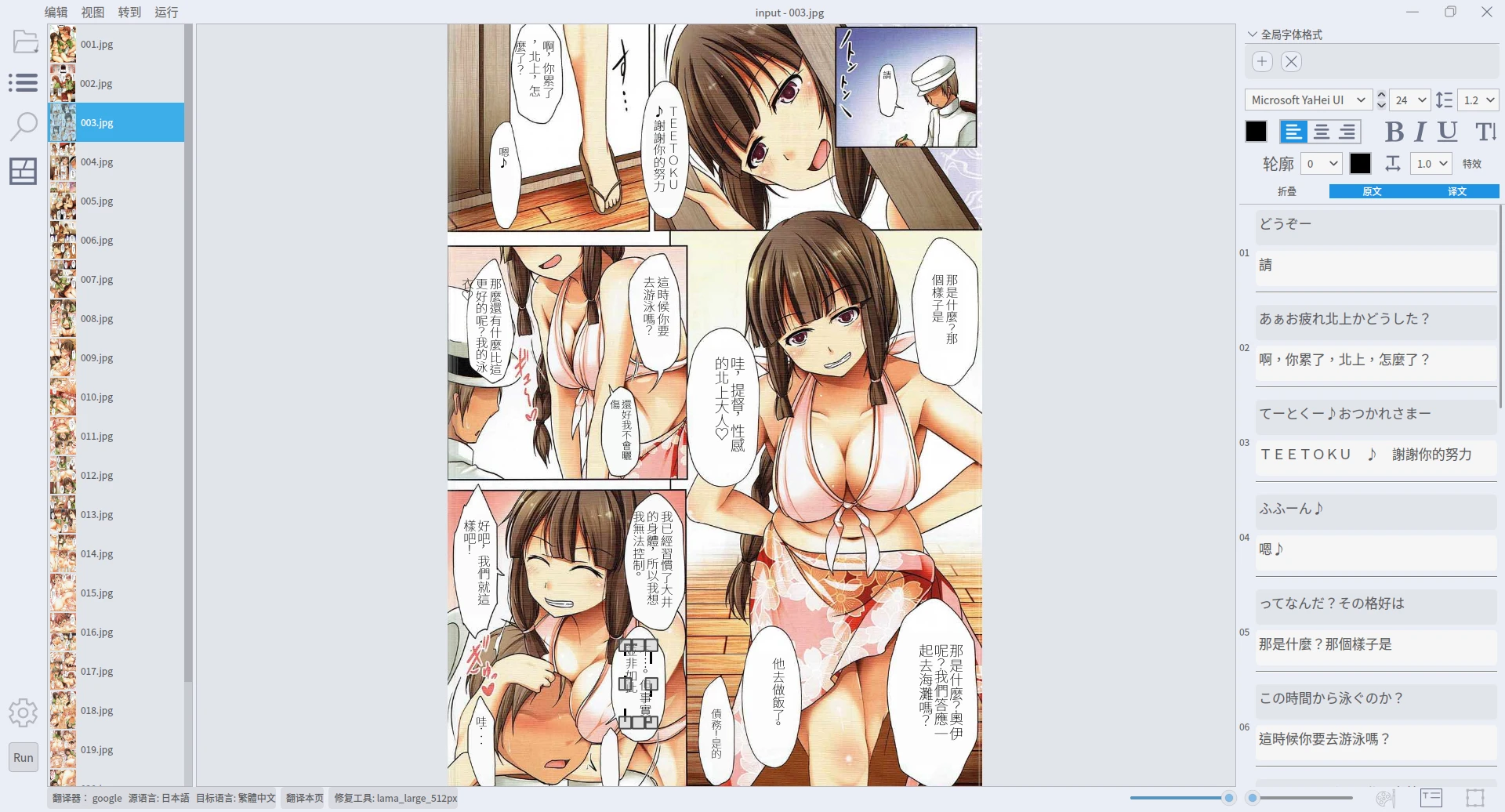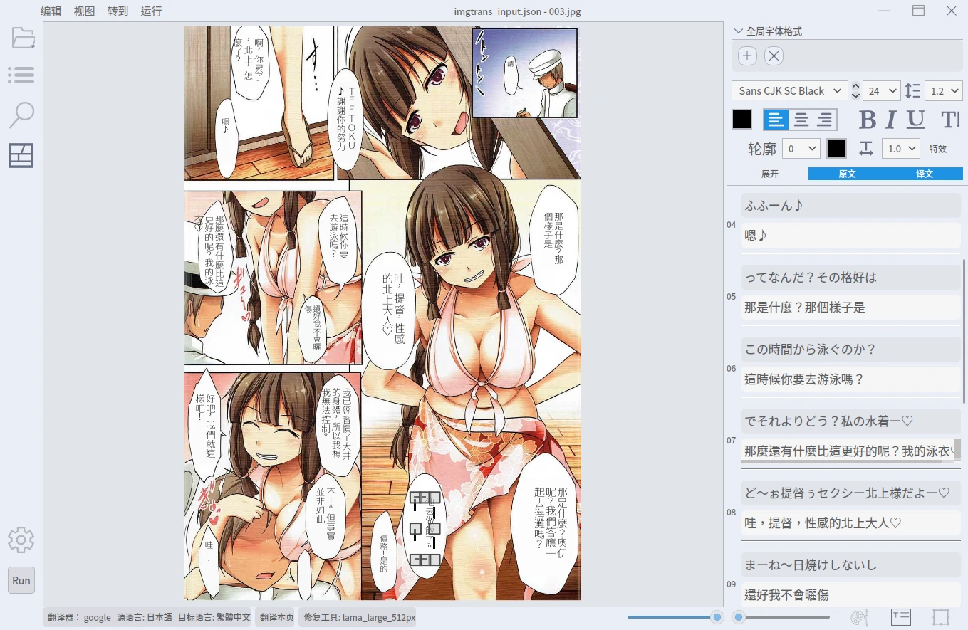 在此我們先跑過一輪自動化翻譯,看看BallonsTranslator的威力,後面再來討論如何進一步編輯圖片。