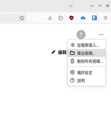 到設定 → 密碼管理員,點選匯出為.csv檔