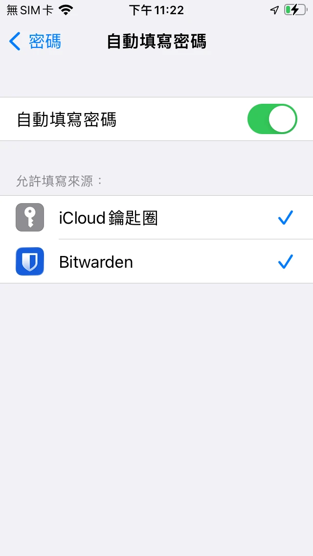 iOS到系統設定 → 密碼 → 自動填寫密碼,修改為Bitwarden