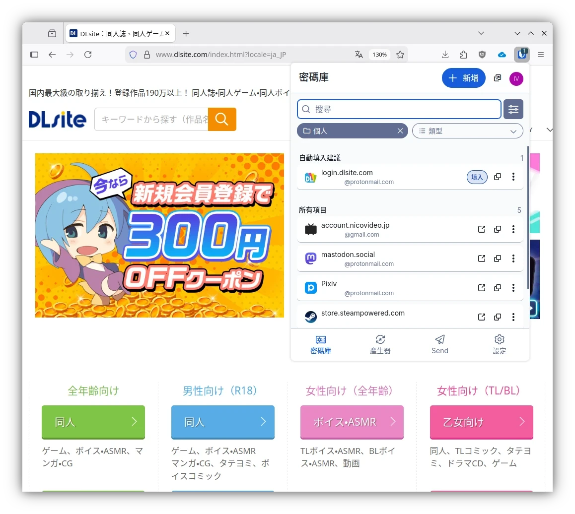 - 在Firefox、Chrome、Edge、Safari、Opera等主流瀏覽器都可以使用,跨瀏覽器同步密碼,自動在需要密碼的地方跳出填入提示框。