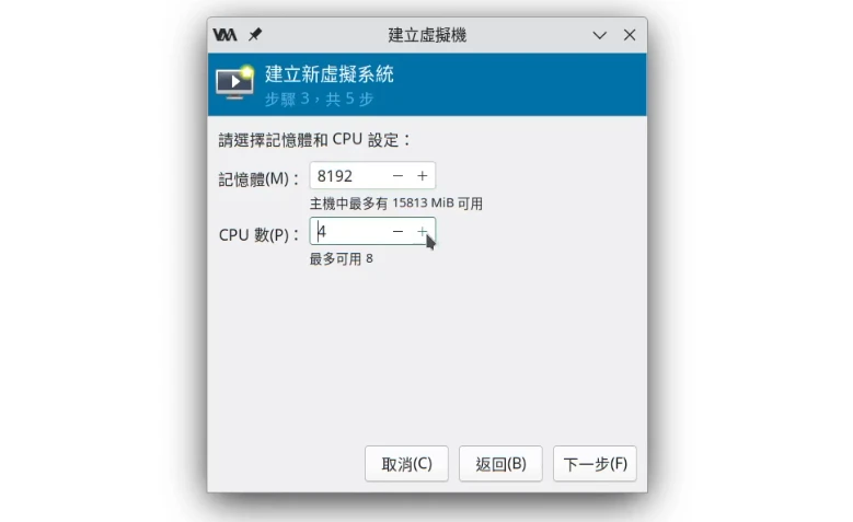 建議分配8GB RAM、4核心CPU。RAM越大越好,因ARM指令轉譯有時會佔用大量RAM。