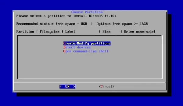 3. 開始安裝Bliss OS系統,硬碟分割#