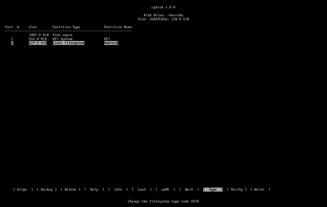 New,全部按Enter,分區名稱輸入android,將第二個分區設為Linux系統分區。(可能因不對齊導致出現三個分區,不用理它)