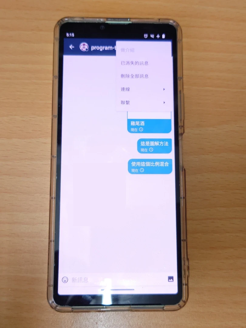 聊天的界面很簡單,可以傳文字或者圖片訊息,沒有容量限制。訊息傳輸後顯示打勾勾才代表有成功發送。