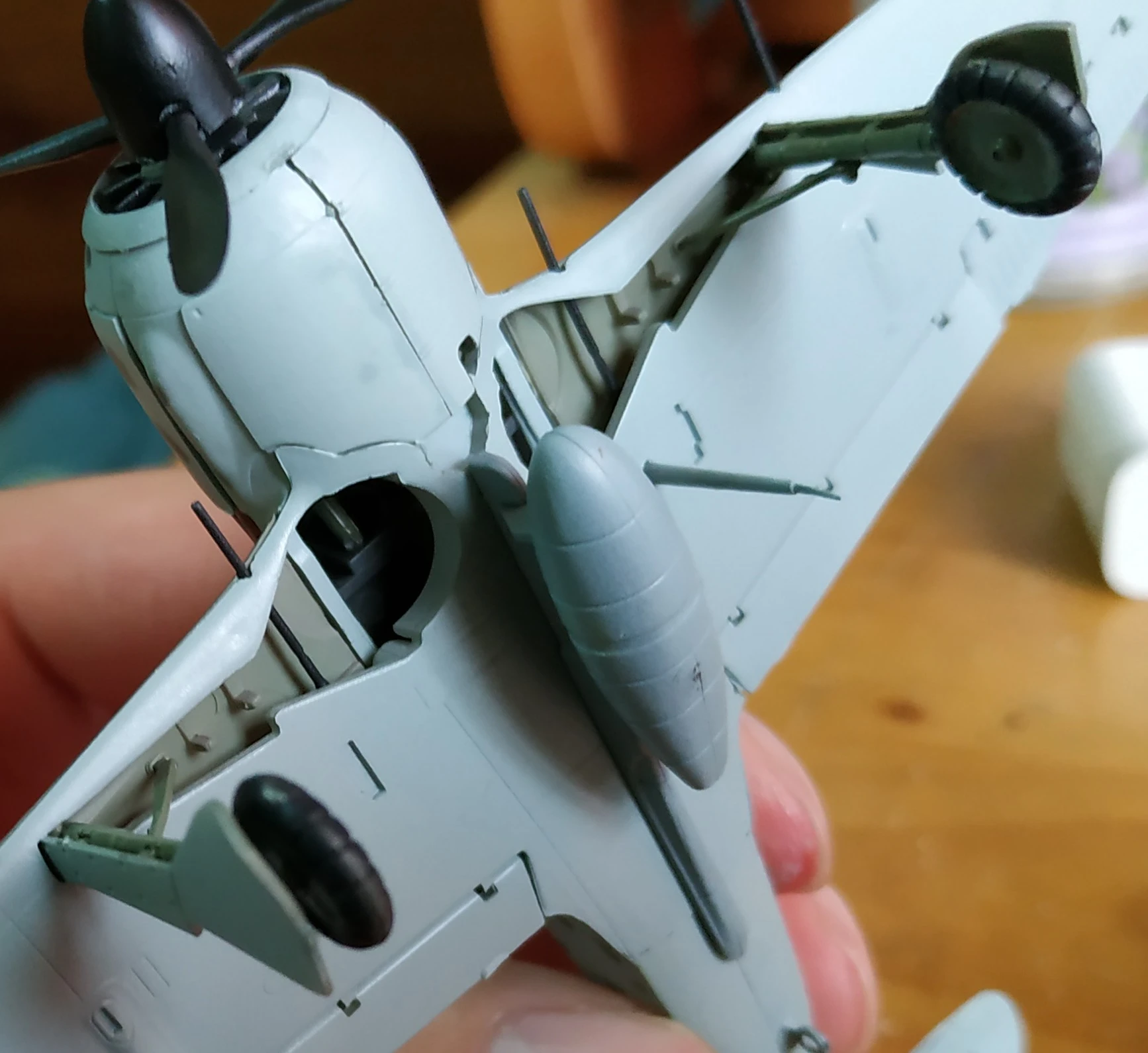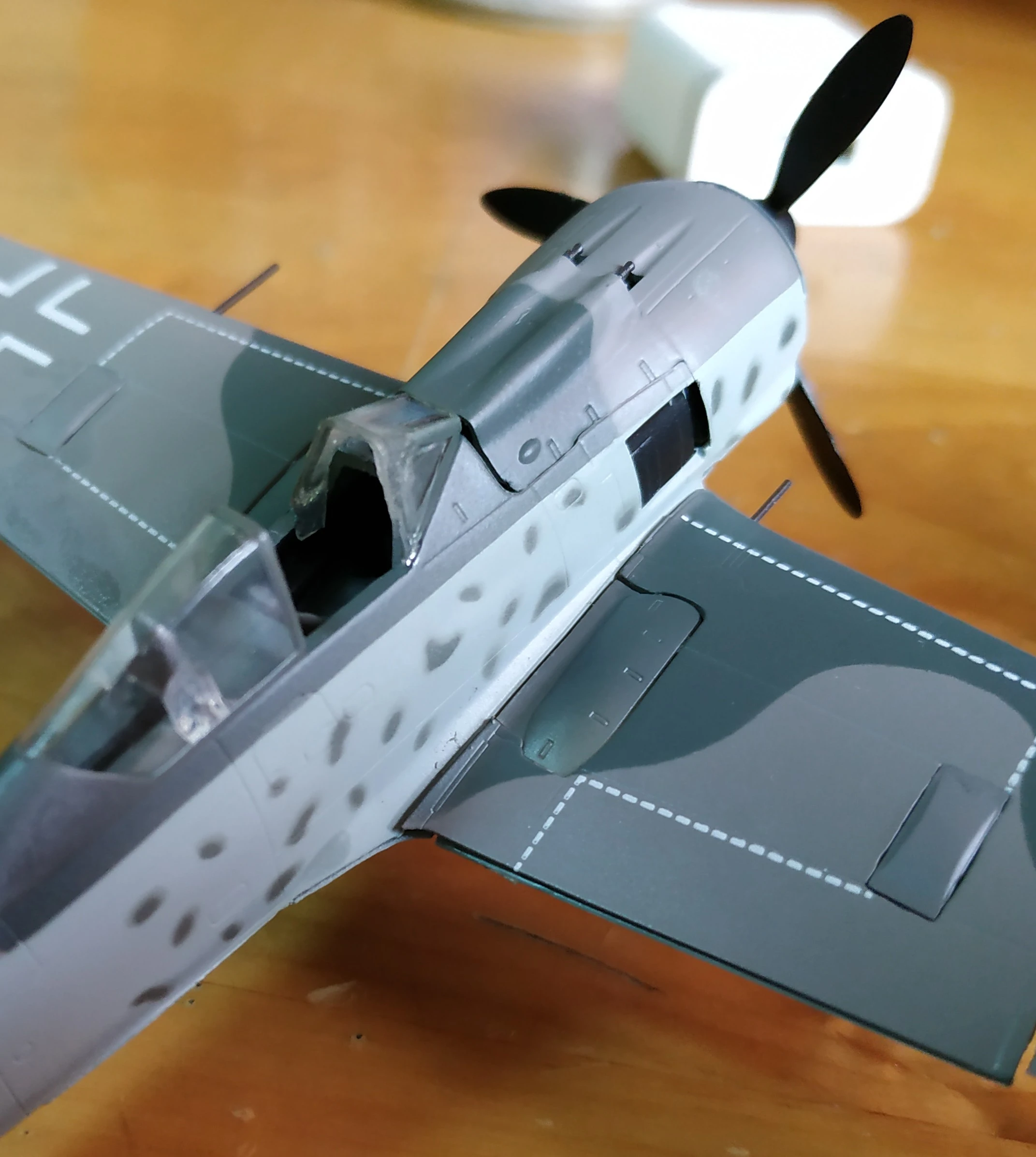 首次使用模型膠,塗太多導致座艙罩和一部分迷彩毀了。就算用模型膠但是有些縫隙仍然合不太起來。