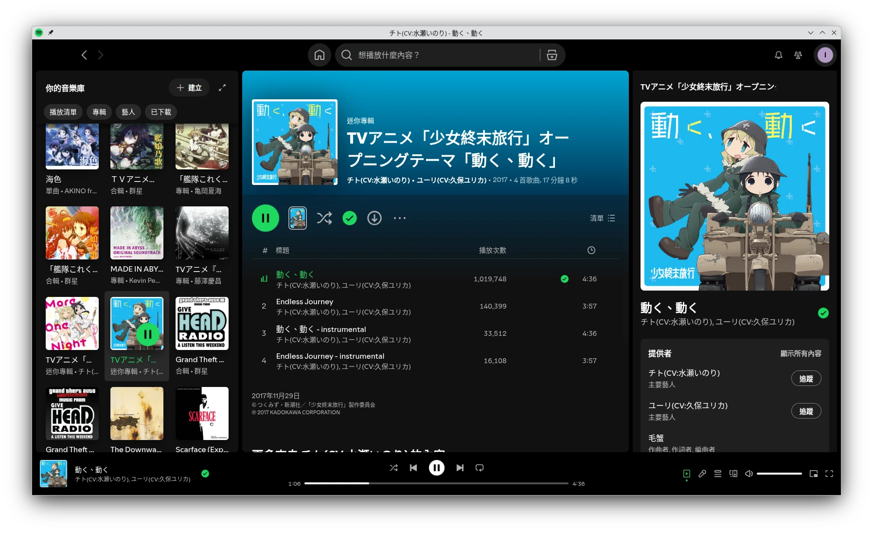 Spotify這個平台如果不訂閱Premium,就只能搜尋到單曲,且音質受限,用起來跟Youtube沒兩樣嘛。我是喜歡以專輯為單位收藏音樂的,追求整體專輯的完整的聆聽體驗,這樣概念專輯的才好欣賞,而非單曲,所以一定要付費。