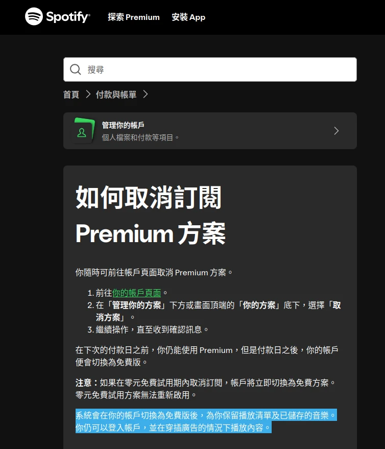 既然都要付費,我不如選擇比較開放的Spotify Premium,就算你降級成免費方案也不會砍音樂資料庫。這是在官方Spotify論壇獲得證實的情報,直到2026年的今天,依然有效。