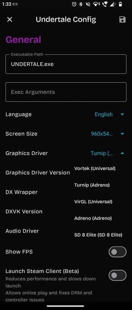 關於遊戲效能的調整:點選Edit Container能夠調整要用的圖形驅動程式,高通推薦用Turnip,聯發科則是Vortex,都不行的話就選VirGL。但有些遊戲仍可能會黑螢幕。