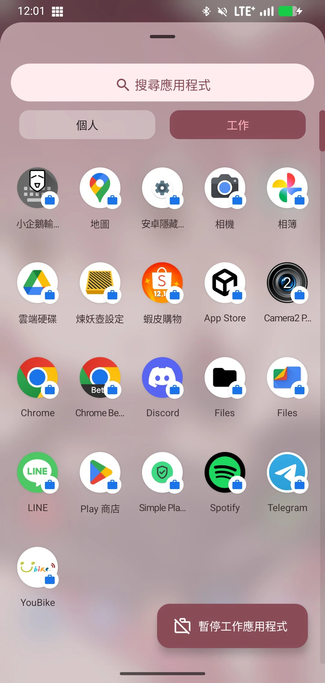 工作設定檔需要靠第三方APP觸發,例如Shelter。有完整的檔案管理功能。不能設定密碼。執行時依然會收到通知。可以凍結APP執行。開啟後會在主畫面APP列表旁邊顯示工作設定檔。