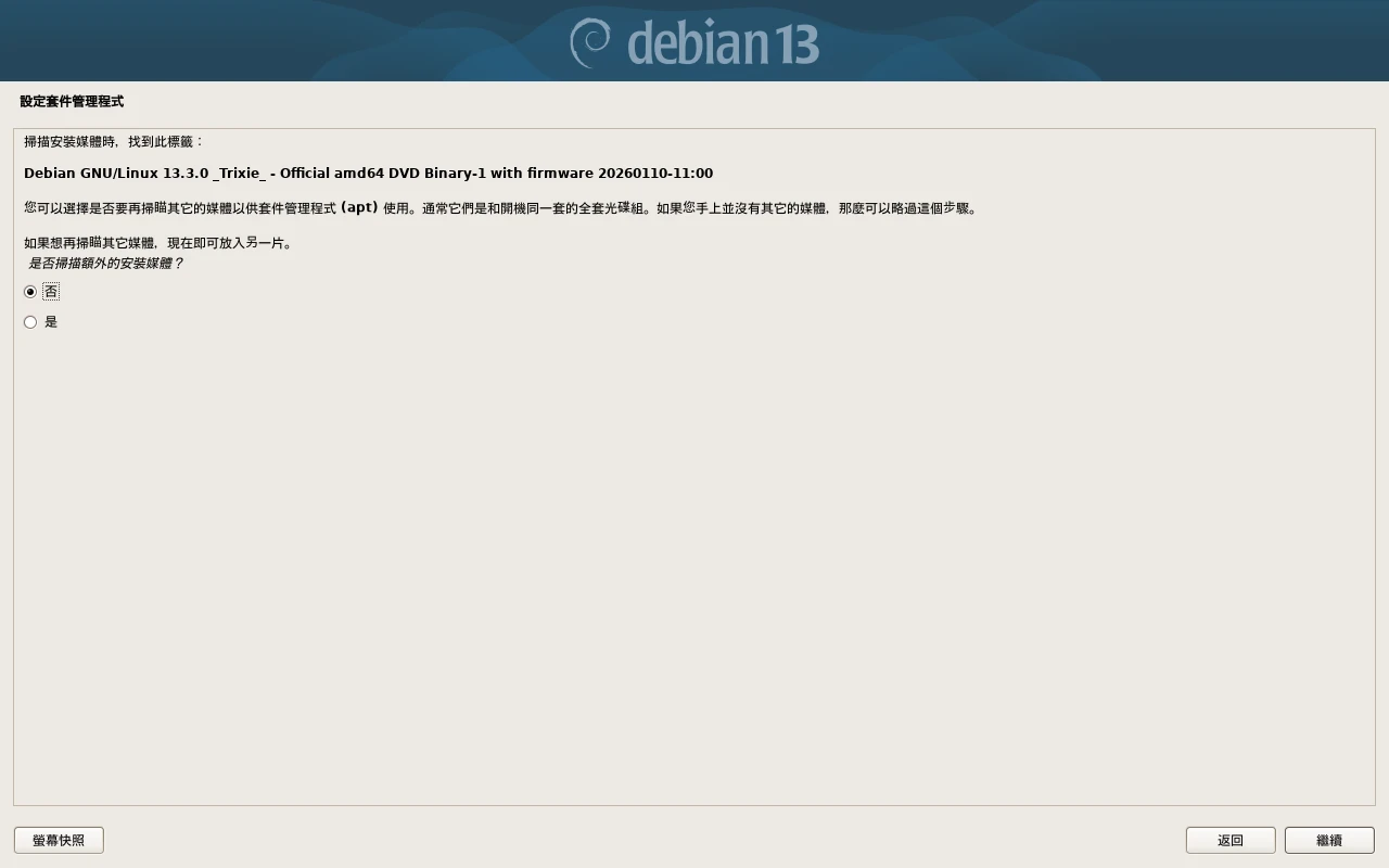 在跑Debian安裝程式的時候,應該就已經將系統設定為正體中文。