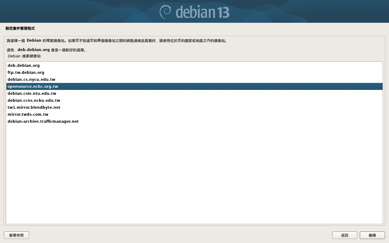 deb http://opensource.nchc.org.tw/debian/ trixie main non-free-firmware non-free contrib