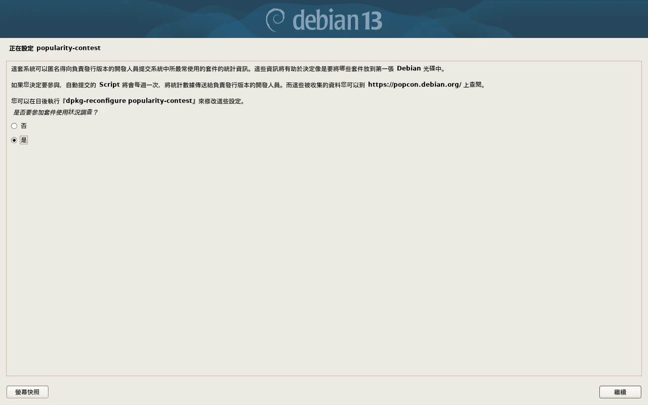 可選擇要不要加入的Debian的套件安裝統計,協助其他人了解哪些軟體較受歡迎