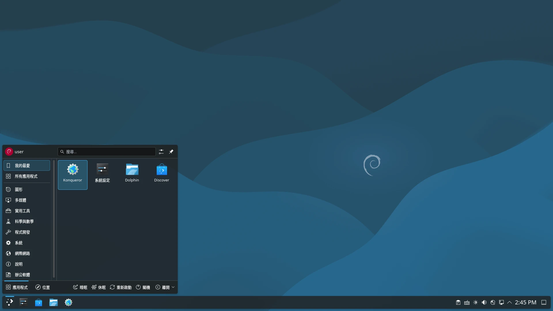 sudo apt update- 另外根據Debian Wiki,Debian安裝程式安裝的KDE桌面僅是