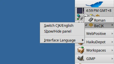 pkgman install becjk安裝後點選桌面右上角的鍵盤圖示開啟中文輸入法,就可以打字了。