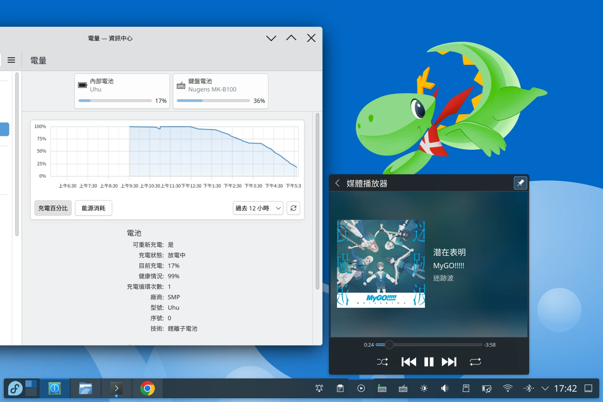 至於續航力部份,要看你用的程式是哪些。一般Chromium瀏覽器上網打打字的話,Surface Go 2裝Linux大約能撐5小時,這個成績與Windows互有勝負。畢竟Surface是專為Windows開發的硬體,Linux核心調度跟Windows是無法比的。