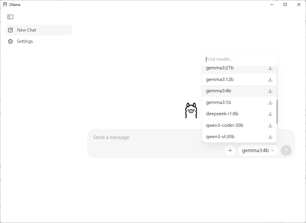 開啟Ollama程式,選取一個模型,下載後即可聊天。Windows下載的模型檔案會儲存到