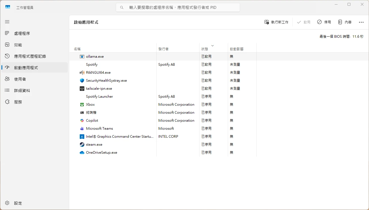 Ollama的服務會在開機自動啟動,這點可以從工作管理員看到。
