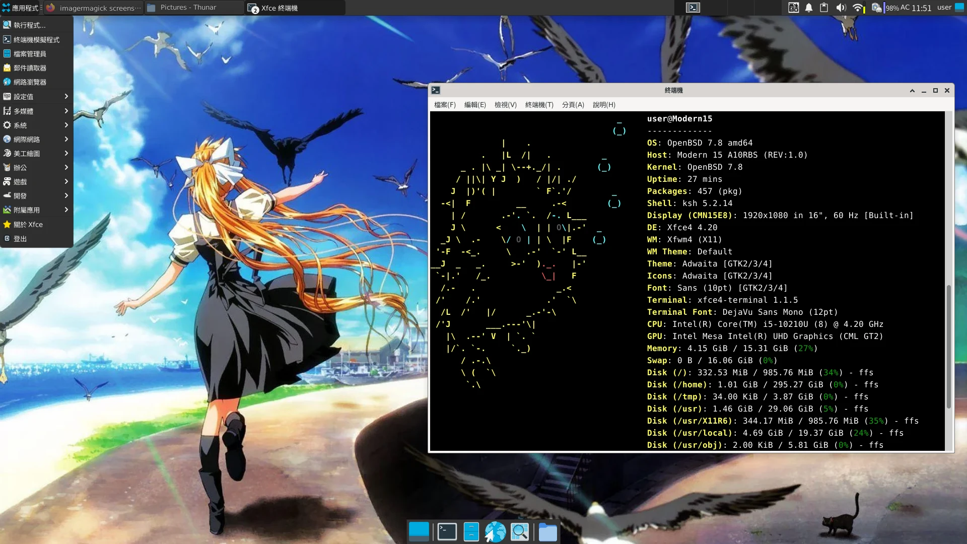 雖然KDE Plasma版本蠻新的,但因為OpenBSD維護者少,使用起來bug也多。因此我想精簡的系統還是用精簡的桌面就好。