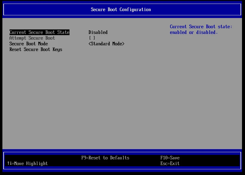調整UEFI設定。現代電腦通常會啟用Secure Boot,然而開啟Secure Boot的電腦可能會無法啟動其他系統。雖然Ubuntu支援Secure Boot,但還是建議將其關閉省得日後裝驅動要簽名的麻煩。每家主機板的設定都不同,請自行查詢官網說明。
