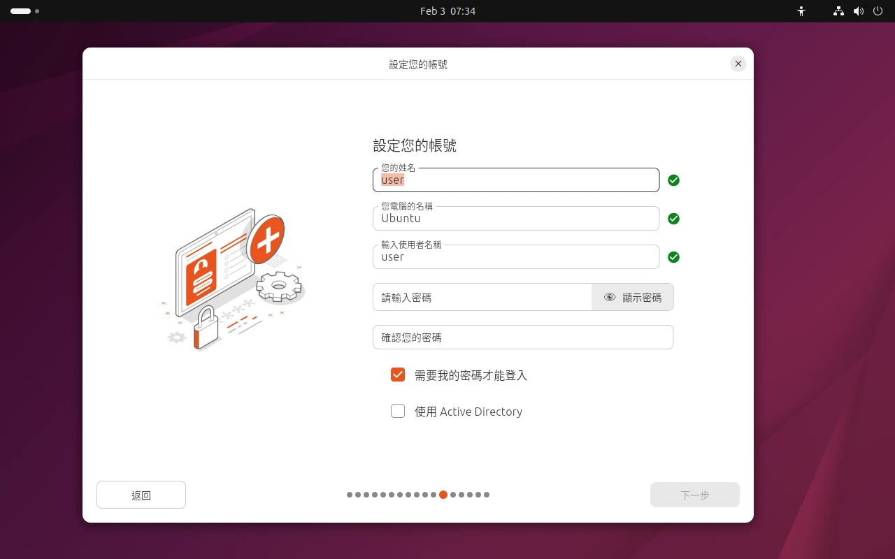 設定登入系統的帳號密碼,建議使用英文大小寫+數字就好,日後無法修改帳號名稱。