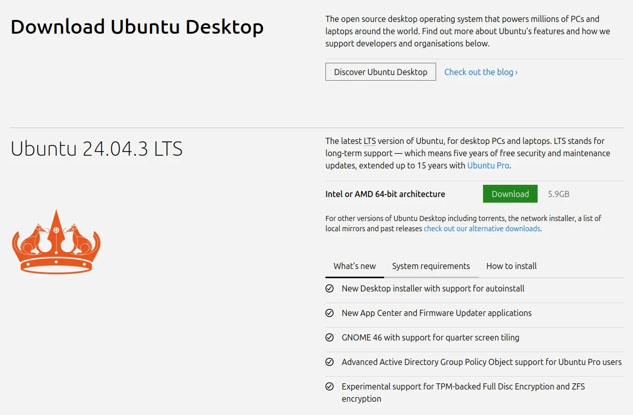 官方有提供許多不同桌面環境版本的Ubuntu分支(flavor),例如界面漂亮的Kubuntu、適合老舊電腦使用的Lubuntu、伺服器專用的純文字Ubuntu Server等等。本文Ivon使用的是使用最廣泛、搭載GNOME桌面的一般版 Ubuntu Desktop ,適合個人電腦使用。