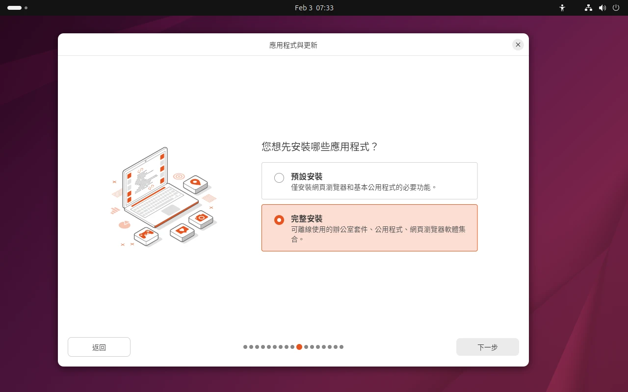 使用完整安裝,這樣它會幫你安裝好一些常用文書軟體