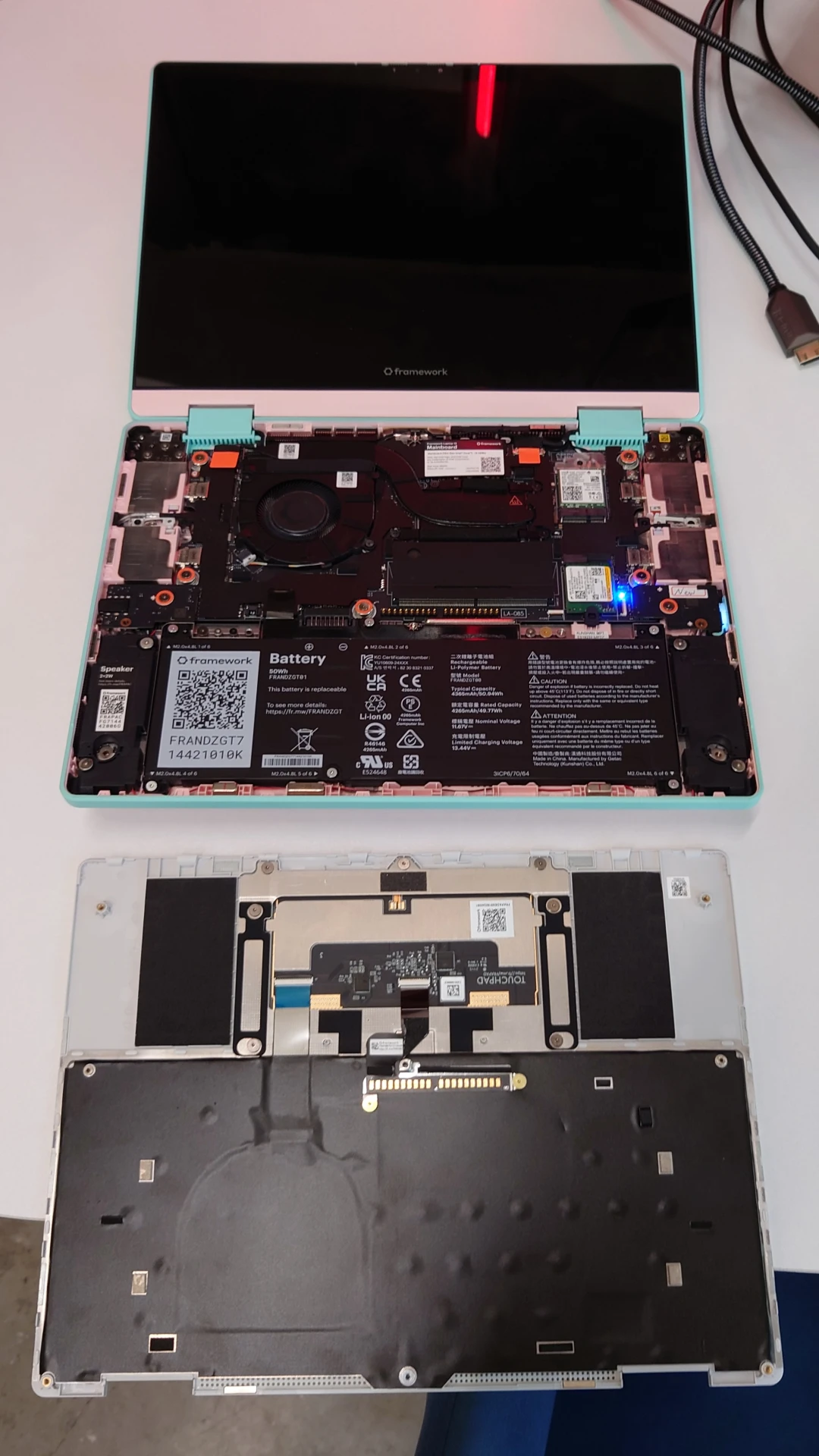哈哇哇,OCF開放文化基金會作為贊助商帶來的筆電,終於摸到真正的Framework筆電了,由QA帶來的Framework 12原廠貨,是ThinkPad以外對Linux相容性最好的筆電品牌之一,幾乎不用額外裝驅動。只要一根螺絲起子就能從正面拆掉鍵盤,露出所有內構(雖然有點FNAF獵奇感)。零件都模組化設計,自由更換。