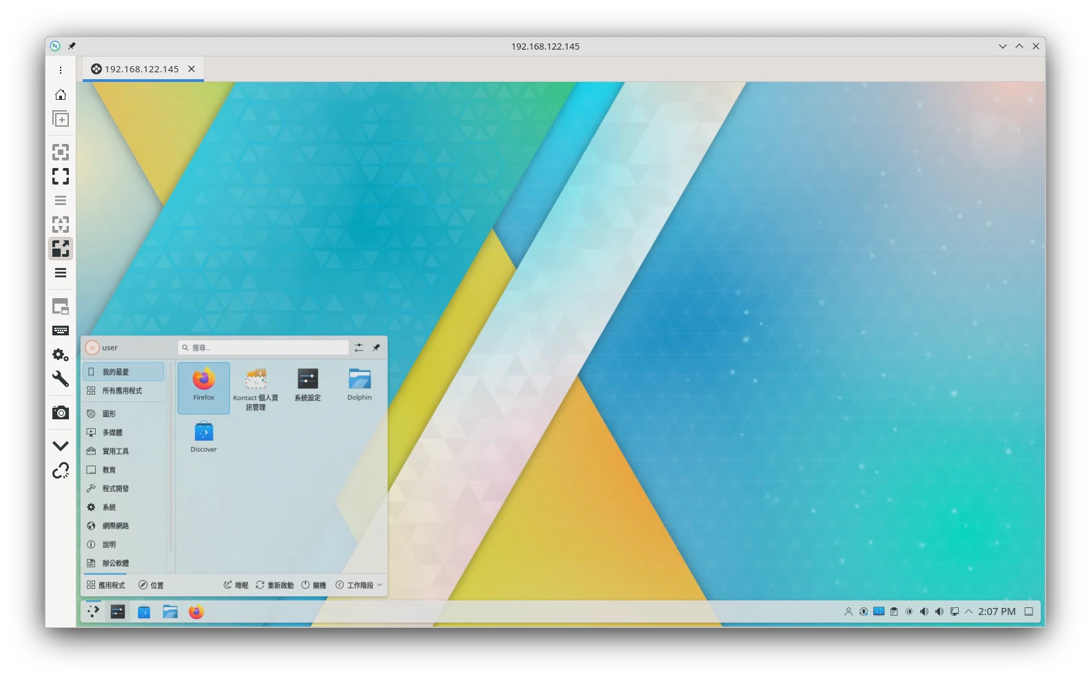 KRdp是KDE Plasma內建的遠端桌面功能,不需要額外安裝軟體就能使用。