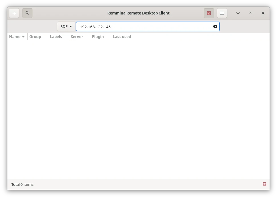 在另外一部電腦開啟RDP客戶端,例如Remmina,通訊協定選RDP,然後輸入Linux IP連線即可。