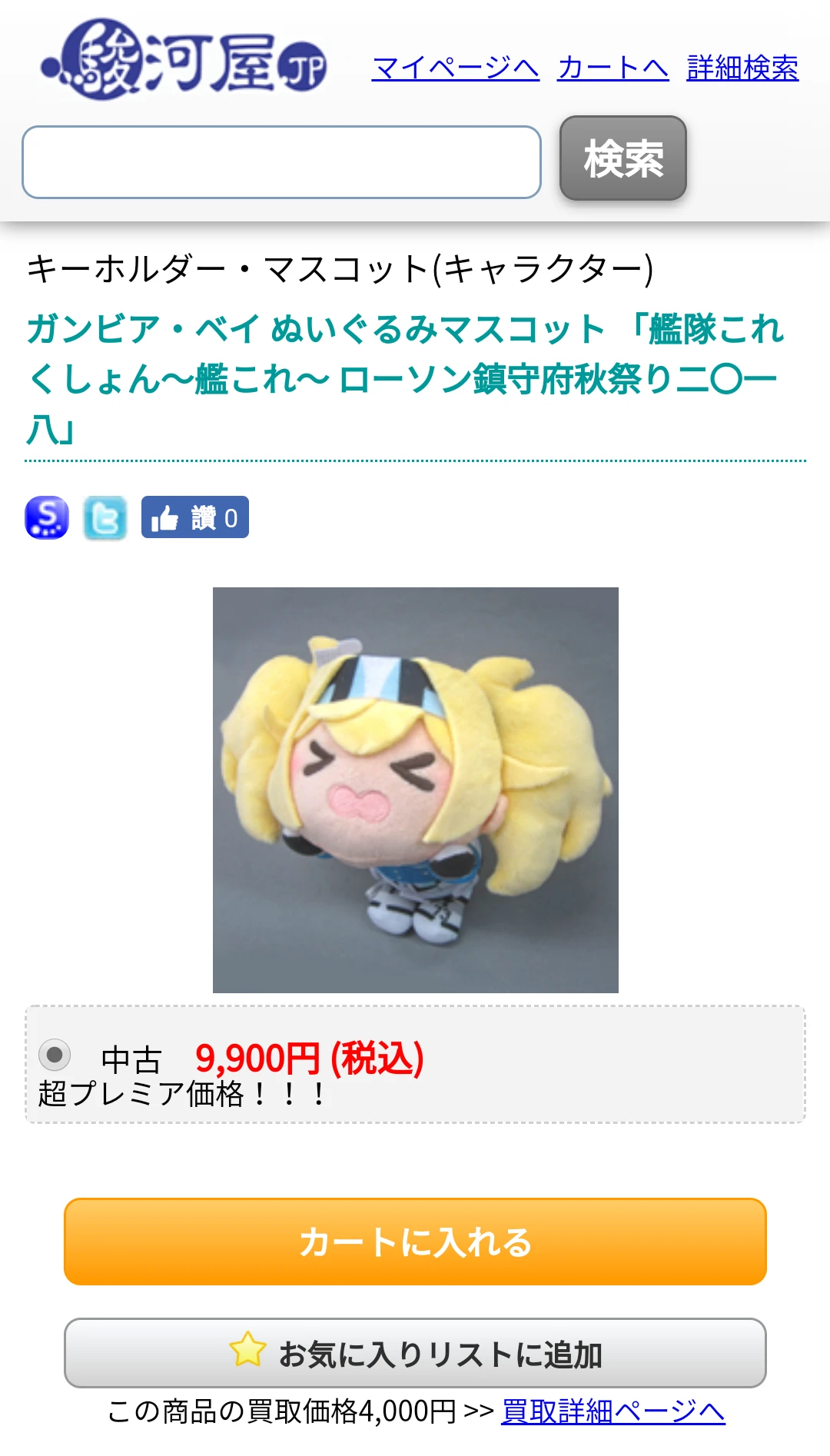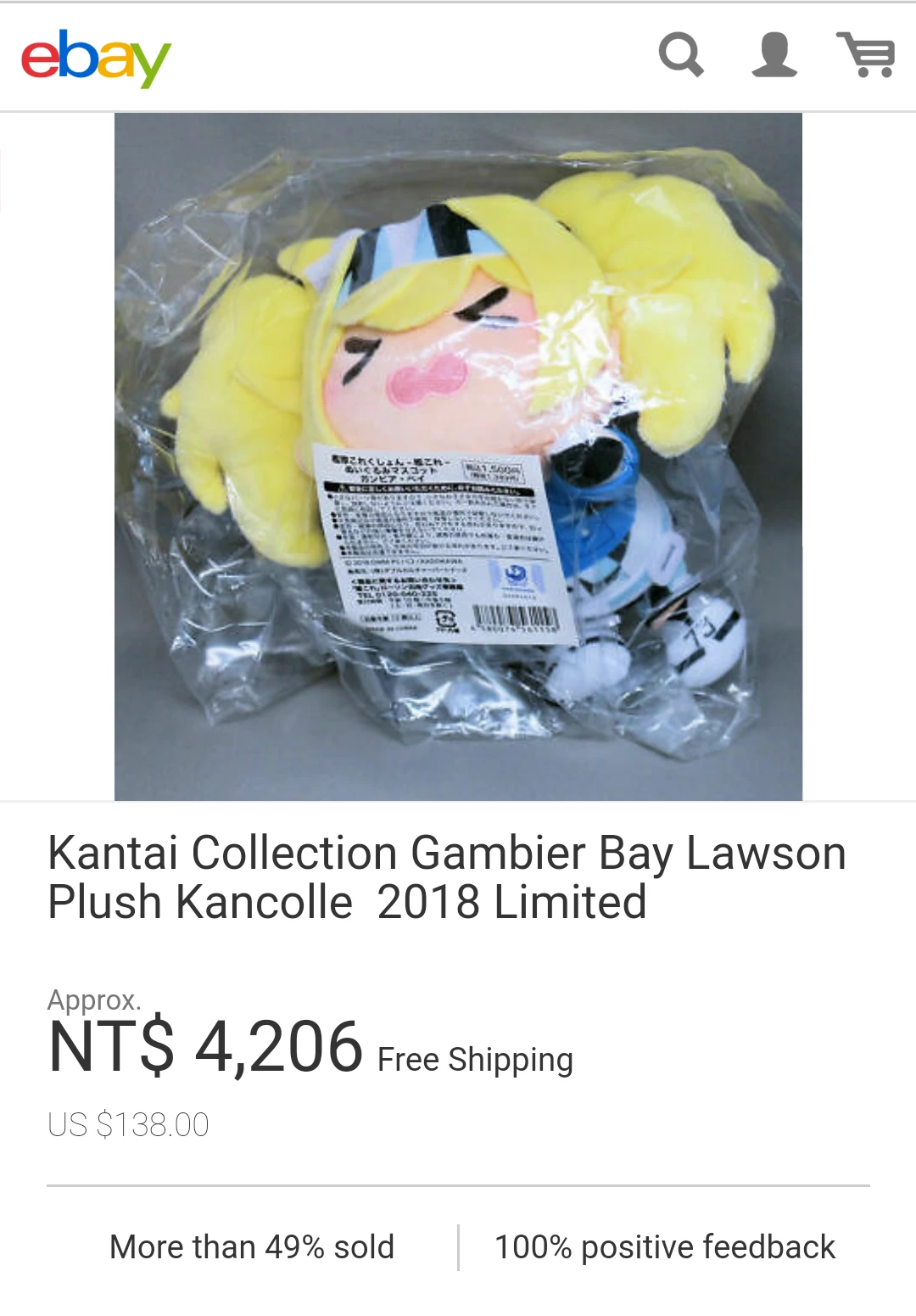 2018年限定生產的Gambier Bay娃娃,因為沒有再生產,ebay上拍賣開到NT.4000,駿河屋炒到9800日圓,遠遠高過其他官方娃娃的價格。