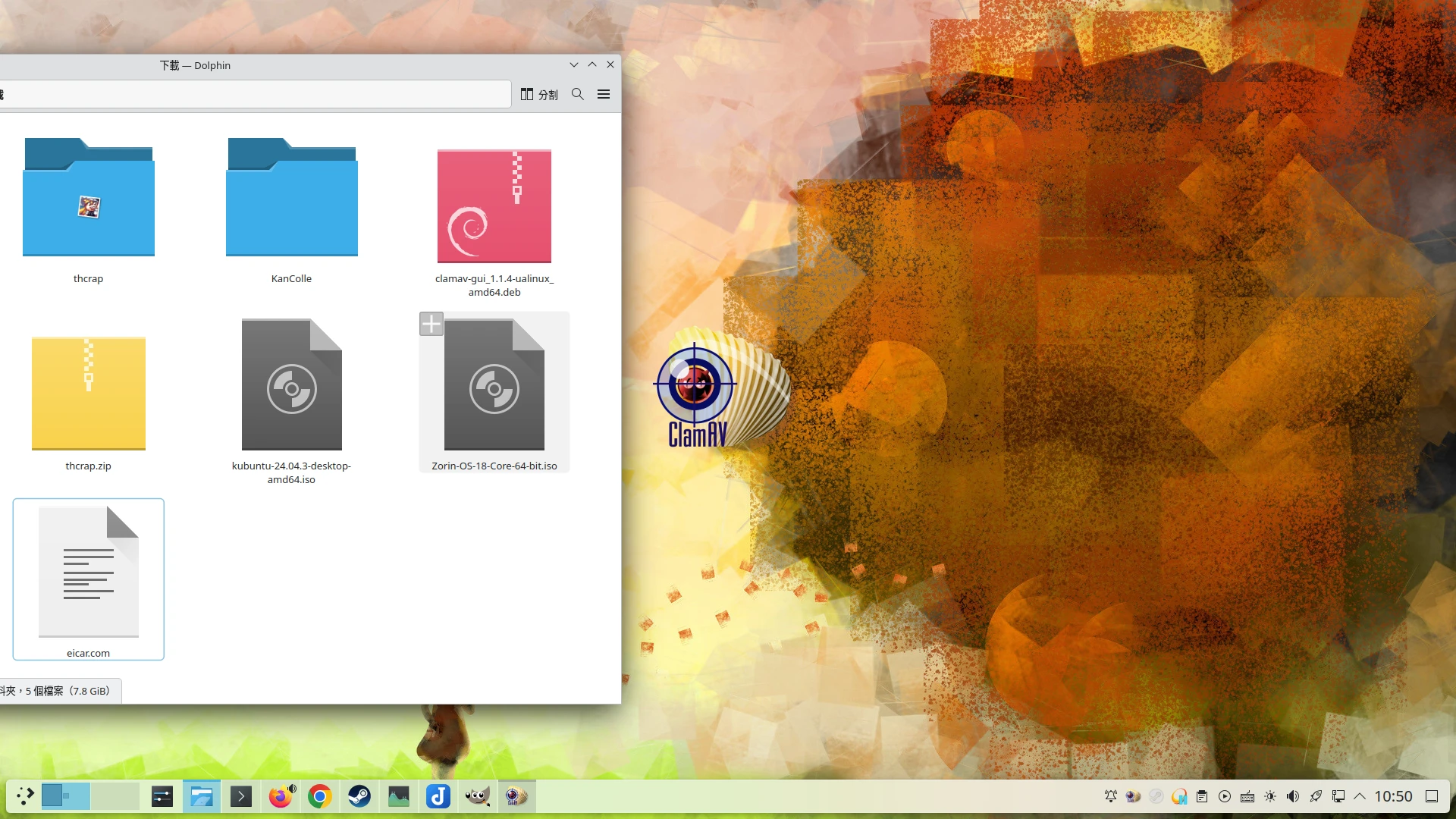 還有,點一下ClamAV-GUI的系統匣圖示,開啟DropZone功能,桌面會顯示一個蛤蜊圖示,將檔案拖曳進去就能進行掃描。