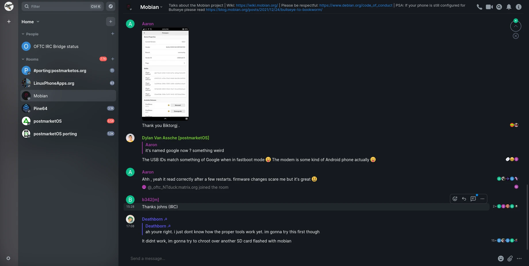 實際用下來,PinePhone可以滿足很基本的通訊需求。postmarketOS和Mobian都是很有趣的手機Linux發行版,只不過前者是採用muslC,對主流Linux來說是比較少見的選擇,偏偏這個專案支援一堆Android舊手機,比較多人參與開發。