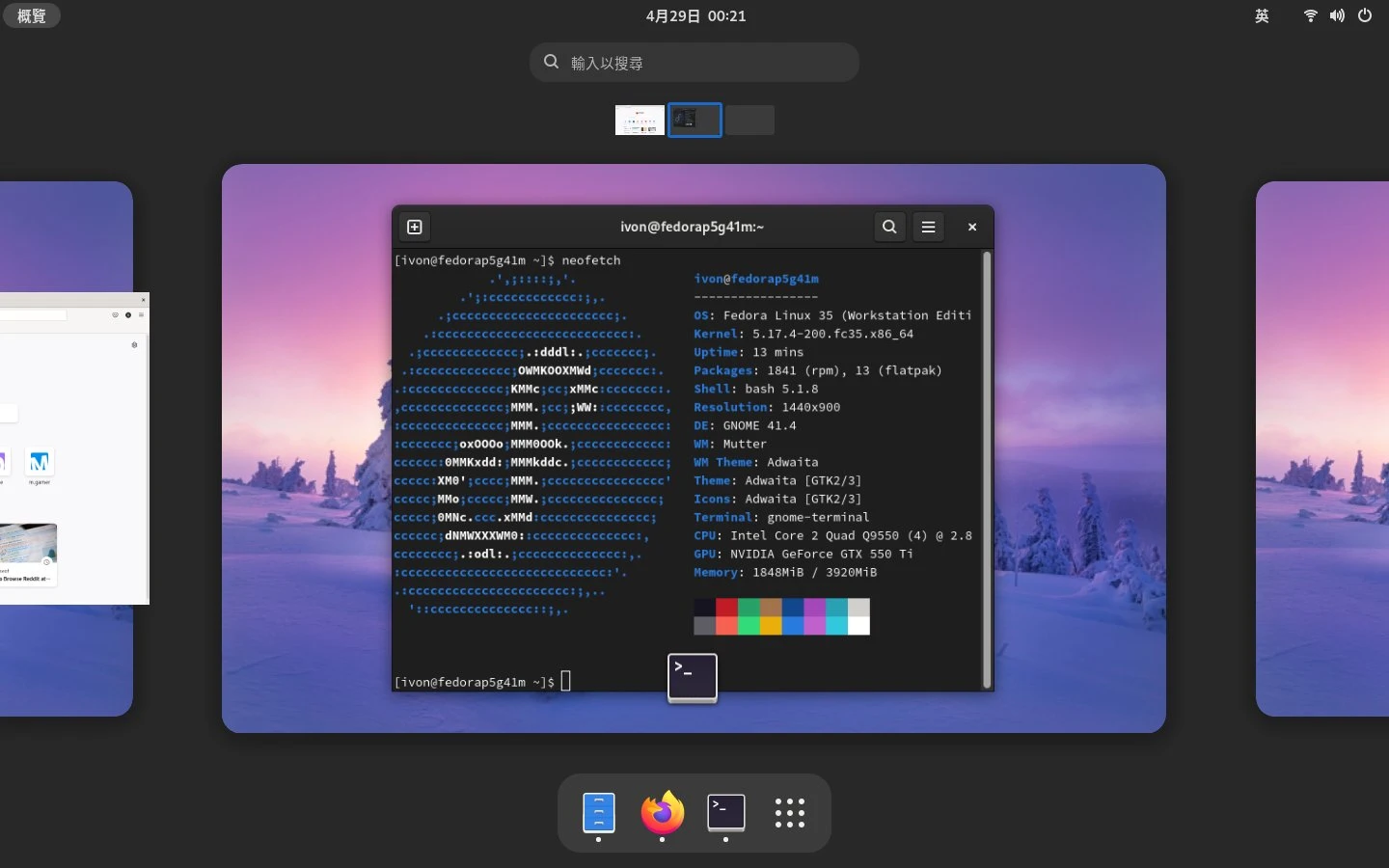 發行版採用Ubuntu + Gnome的原因為很多人用,使用圖形介面和終端機的比率大約一半一半。