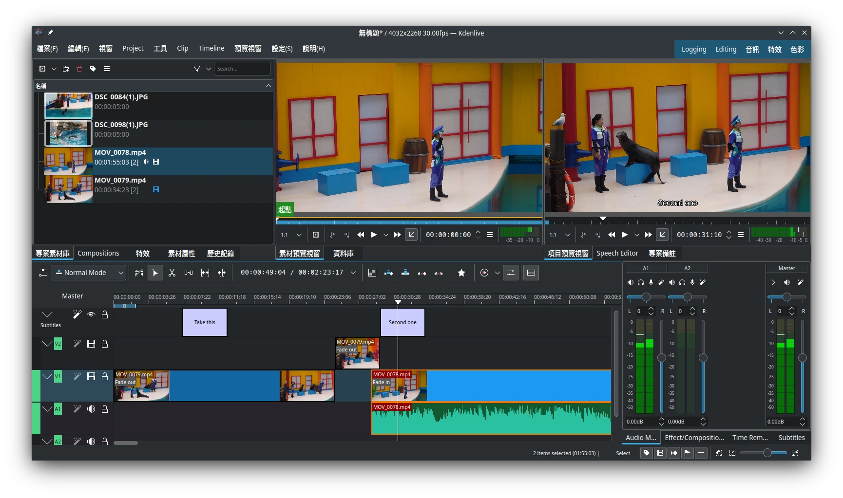 | Kdenlive | 功能齊全的影片剪輯軟體,可剪輯影片、轉檔影片、加字幕、AI上字幕、加特效。類似威力導演。 詳細使用方法 |