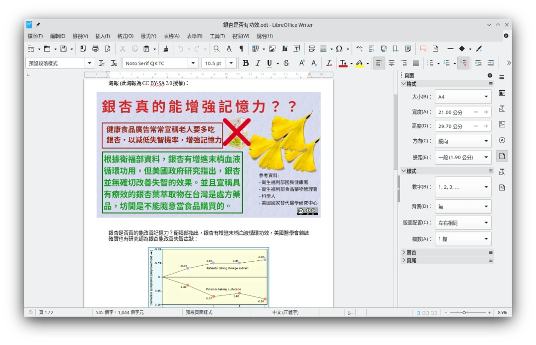 | LibreOffice | 相容Microsoft Office文件的文書處理軟體,可製作文字文件、試算表、簡報、編輯PDF、編輯數學公式。支援開啟.odt, .odx, .odf, .ods, .docx, .xlsx, .pptx格式的文件。 詳細使用方法 |