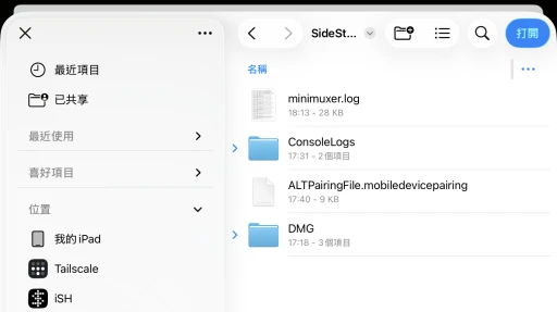 在提示要匯入Pairing File的時候,不要選取.p12憑證。開啟我的iPhone → SideStore資料夾,選取