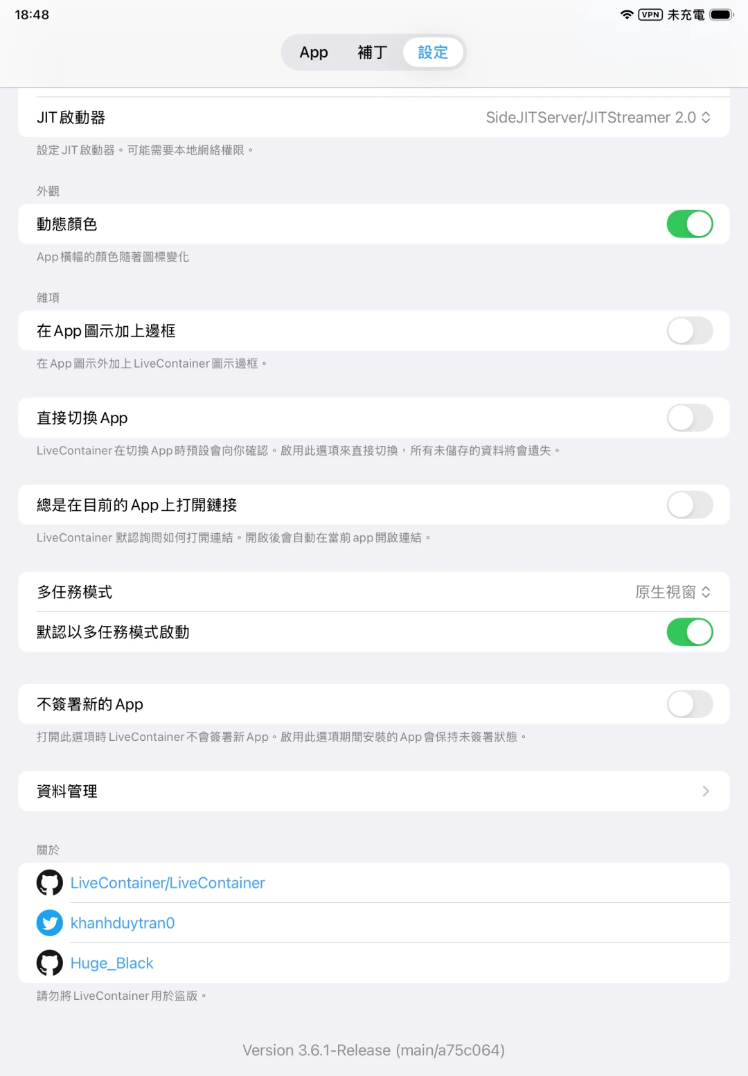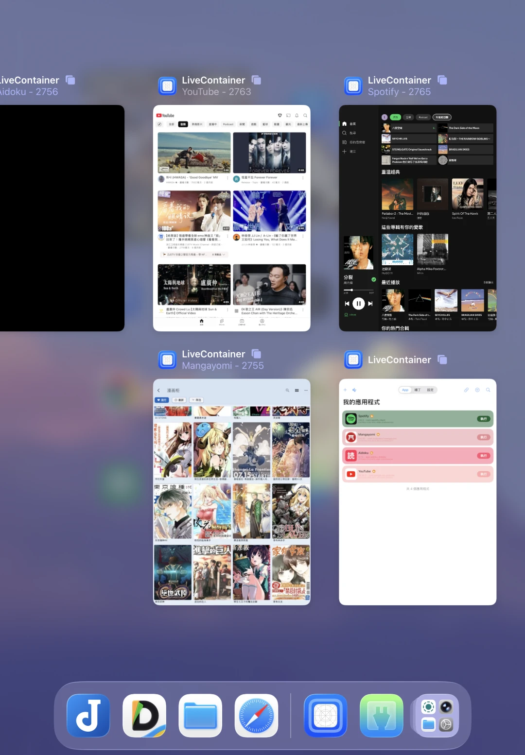 上面的這個多視窗模式我認為比較適合大螢幕iPad使用。小螢幕的iPhone應該在LiveContainer設定 → 改用iOS原生視窗模式。