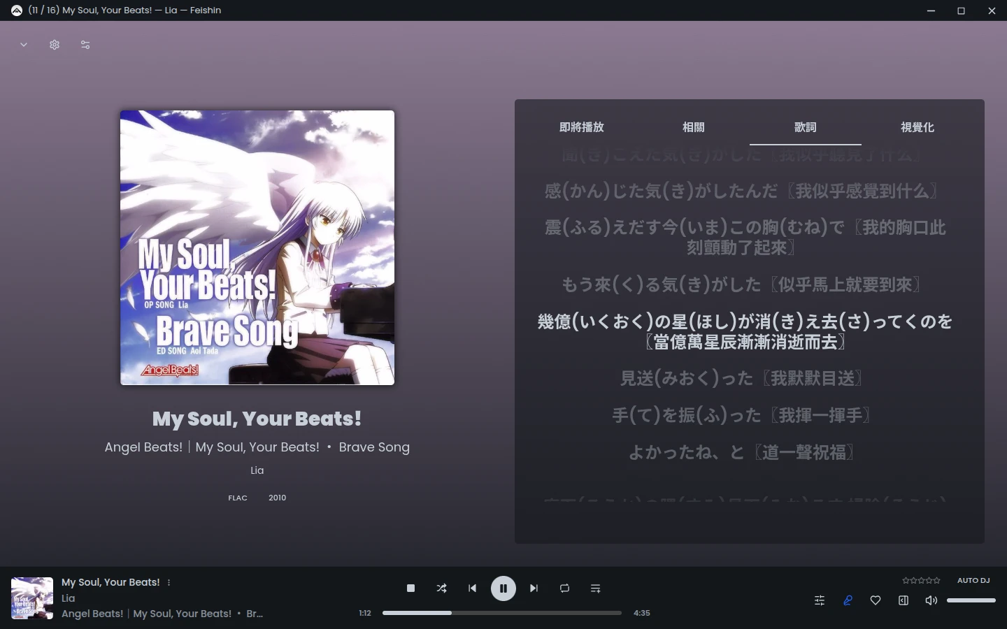 支援在播放時轉碼壓縮音訊,讀取m3u8播放清單,並顯示本機歌詞檔。