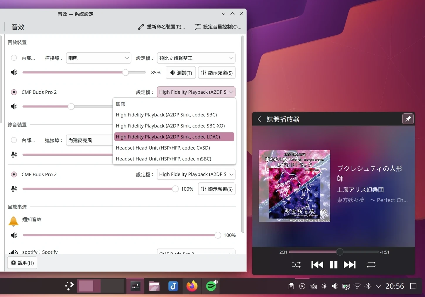 順帶一提,CMF Buds Pro 2當然也可以在Linux電腦使用,PipeWire提供LDAC編碼器。