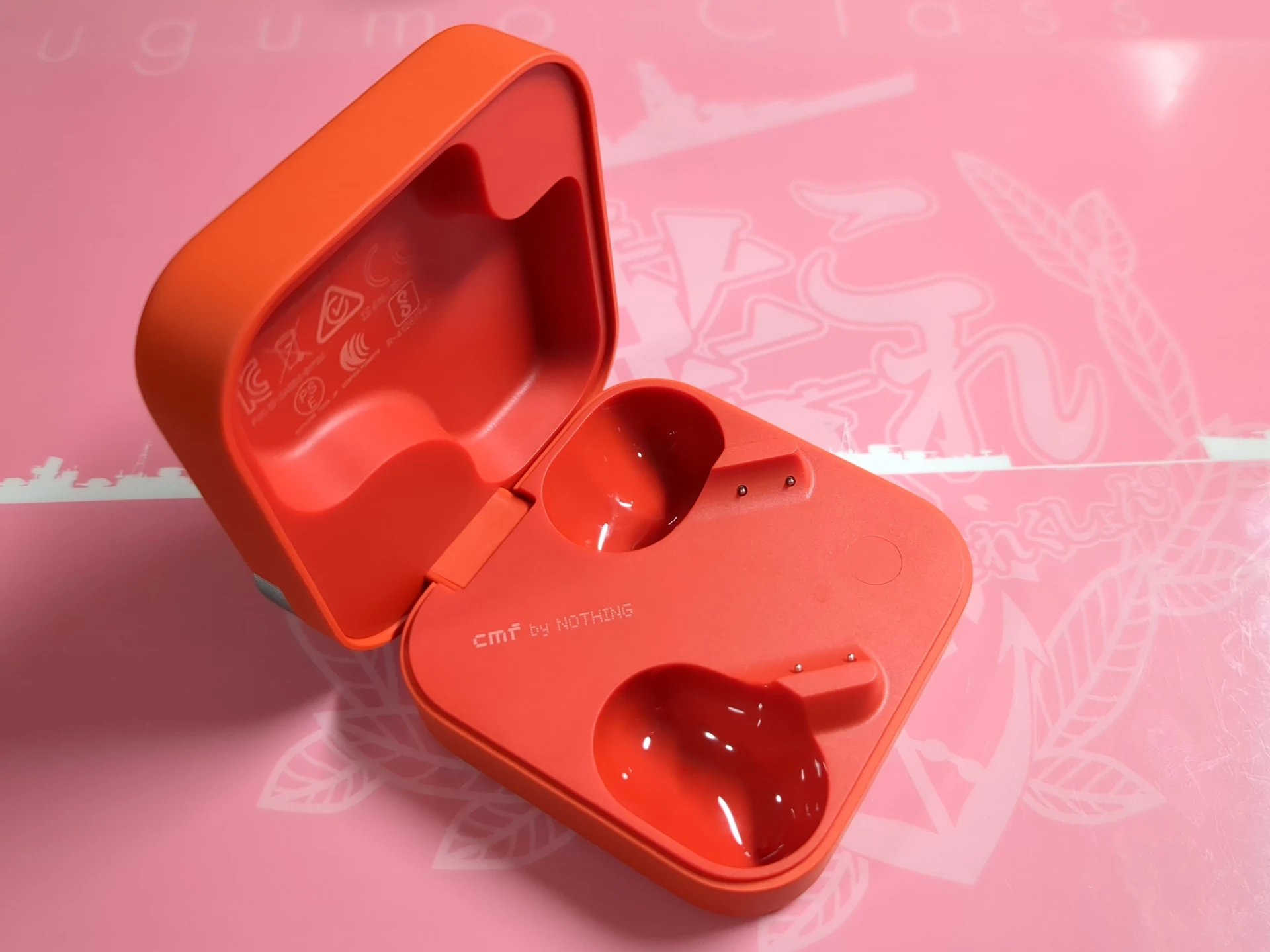 CMF Buds Pro 2有提供四種顏色。我買的這個橘色比柿子還要橘一點,很像塑膠垃圾桶顏色。(圖片僅供參考,請以實物為準)