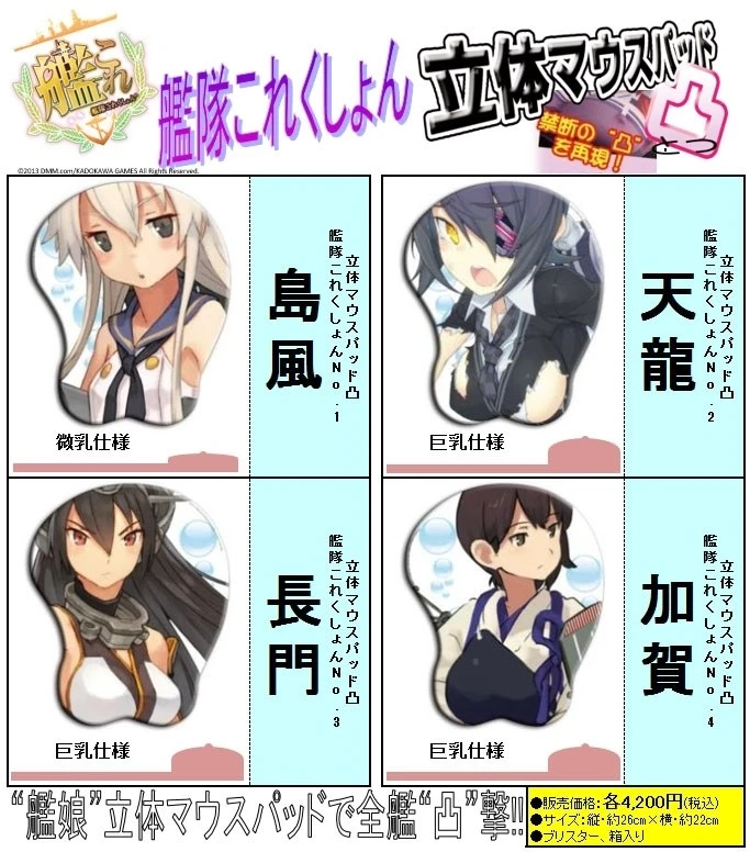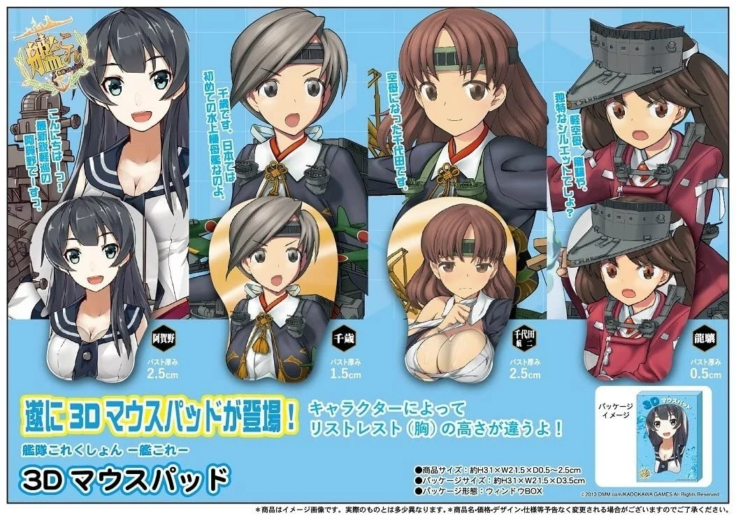 2014年1月,Hobby Japan出的「凸」立體滑鼠墊系列,共4名艦娘。同年8月,第2彈只有3位艦娘。2016年3月,第3彈共6名艦娘,還把禁忌的突起做出來。
