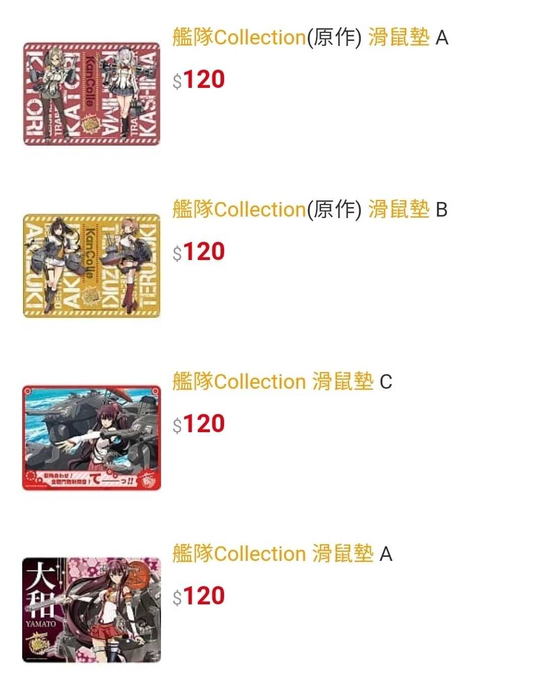 重點是在台灣很難買到,最後找到的是台灣角川2017年出的立體滑鼠墊系列,總共有4個艦娘。