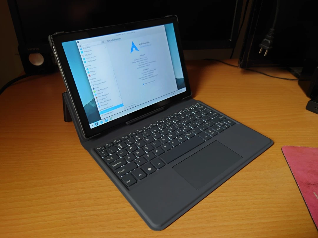 PineTab 2預載的系統為Arch Linux ARM,搭配KDE Wayland桌面環境。PineTab 2的Arch Linux由DanctNIX開發,他之前就開發過給PinePhone、PineTab一代用的Arch Linux系統。