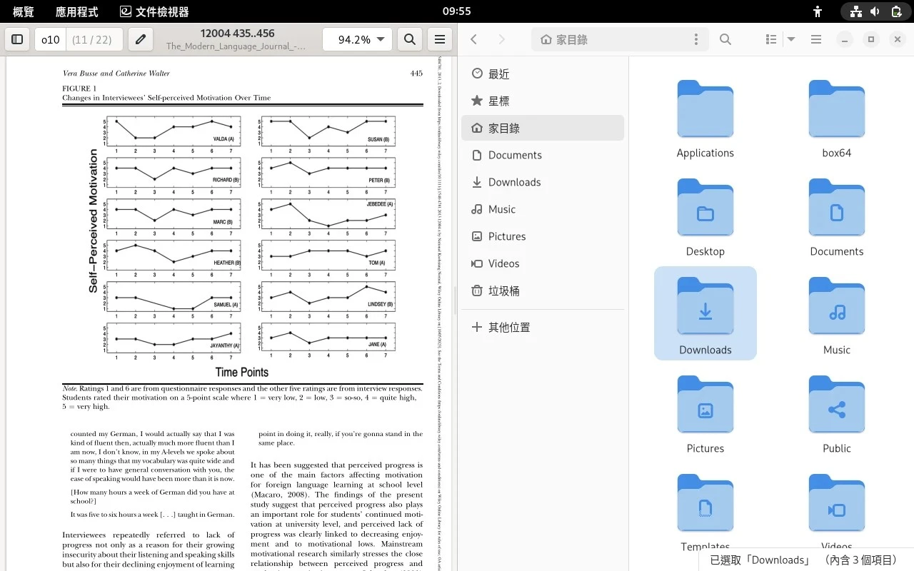 買平板當然就是要看漫畫…額不是我是說,碩士論文。KDE Okular、calibre、GNOME的文件檢視器都是看書好選擇。PineTab 2用來翻論文沒有遇到卡頓情形,還可以自由排列視窗查資料。